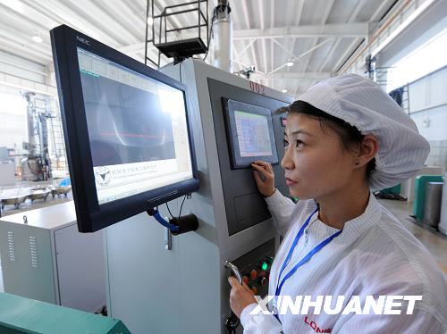 9月4日,企業員工在操作屏前觀察單晶硅生產情況。目前,寧夏2000噸單晶硅一期項目已完成投資1.3億元,并投入生產,預計年產單晶硅600噸。該項目共分三期,總投資6.94億元。整個項目預計于2009年完成。企業全部投產后每年可實現銷售收入44億元、稅收1.5億元。單晶硅的原料生產與產品開發具有較高的科技含量和工業生產附加值。新華社記者 劉海峰 攝