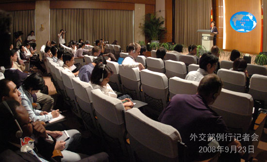 2008年9月23日,外交部發(fā)言人姜瑜舉行例行記者會,就中日關系、查韋斯總統(tǒng)訪華、朝核問題、三鹿奶粉安全事故等回答了記者提問。