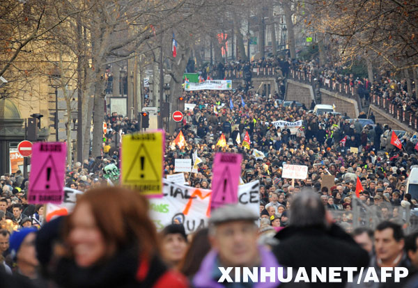 當地時間1月29日,法國爆發(fā)了金融危機以來模第一次大規(guī)模的罷工活動,上百萬人走上街頭,抗議薩科齊政府在處理金融危機中的無能表現。(中國新聞網)