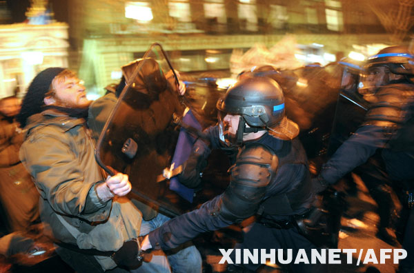 1月29日,防暴警察在法國首都巴黎街頭與示威者發(fā)生沖突。新華社/法新
