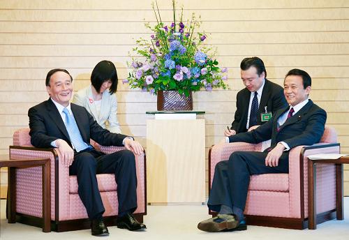 中國外交部部長楊潔篪、國家發展和改革委員會主任張平、商務部部長陳德銘、中國駐日本大使崔天凱等參加會見。王岐山當天還在日本經團聯會館與日本經濟界代表進行了座談。