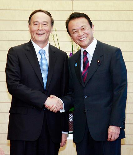 日本首相麻生太郎會見中國國務院副總理王岐山