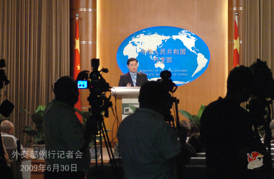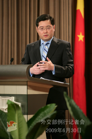 2009年6月30日,外交部發(fā)言人秦剛舉行例行記者會。答問如下: