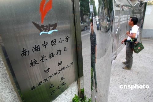 7月1日晚7時左右,依然有記者在北京南湖中園小學門口守候。當晚8時,北京市衛生局通報,該市朝陽區南湖中園小學發生一起學校聚集性發熱疫情,在已追查到的16名發熱學生中,共有7人被確診為甲型H1N1流感確診病例,F共查到93名學生、20名教師和41名家長,共154人一代密切接觸者,已進行集中醫學觀察。目前該校已提前一周放假,其密切接觸者已實施集中醫學觀察。 中新社發 富田 攝