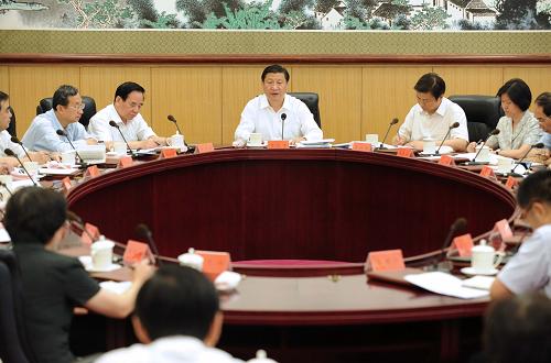7月21日,中共中央政治局常委、中央書記處書記、國家副主席、中央深入學(xué)習(xí)實踐科學(xué)發(fā)展觀活動領(lǐng)導(dǎo)小組組長習(xí)近平,主持召開中央深入學(xué)習(xí)實踐科學(xué)發(fā)展觀活動領(lǐng)導(dǎo)小組第九次會議并講話。新華社記者 馬占成 攝