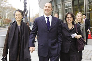馬修·坦丁(左)和拉爾夫-喬菲興高采烈走出法庭。