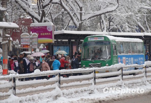 從11月9日至11日,山西大部地區(qū)出現(xiàn)強降雪天氣,太原24小時降雪量達(dá)36.7毫米,是1951年有氣象記錄以來的最大降雪。山西省氣象局啟動暴雪災(zāi)害一級應(yīng)急響應(yīng),山西省副省長劉維佳表示:此次暴雪災(zāi)害給山西的交通、農(nóng)業(yè)、林業(yè)、電力等相關(guān)部門造成了不同程度的影響。圖為太原市居民出行受暴雪的影響,只能選擇步行或乘坐公交汽車。 中新社發(fā) 張雷杰 攝