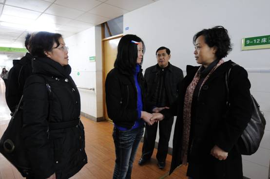 發現趙鵬眼眶有些濕潤,站在趙鵬一旁的妻子張梅趕緊示意記者走出病房,然后輕輕合上房門后告訴記者,趙鵬因體內血小板太低,身體極度衰弱,入院后,在上廁所的過程中曾出現過兩次暈厥,而他每次醒來的第一句話就是:“我想回家,想我們小學的娃兒們。”張梅接著又說,趙鵬真的很堅強,盡管知道自己患上白血病,但他從來沒在她跟前說過一句灰心喪氣的話,“在他眼里,他把學生的前途看得比他自己的生命還重要”。