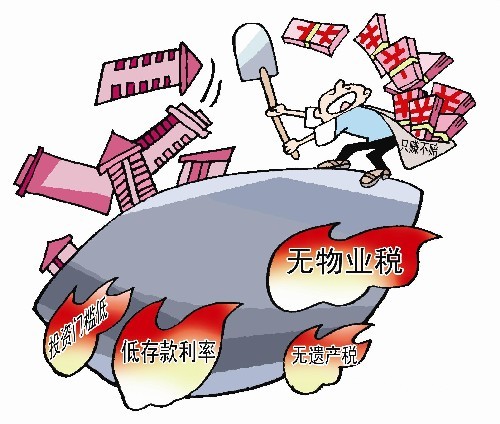 新聞背景:資金充沛、四面出擊的“炒房團”,被認為是房價持續(xù)上漲的推手之一。據(jù)了解,近年來,特別是國際金融危機爆發(fā)以來,我國各地節(jié)節(jié)攀升的房價,已讓部分“炒房”者產(chǎn)生了房價“只漲不跌”“買房只賺不賠”“政府對房價調(diào)低不調(diào)高”等心理,投資信心很足。部分“炒房”者認為,我國人多地少、城市化加速的國情,決定了住房是稀缺資源。特別是在無物業(yè)稅、遺產(chǎn)稅等稅種支出,以及... 中新社發(fā) 司海英 攝