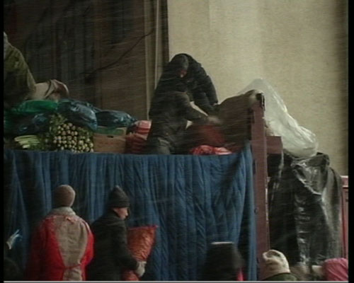 這里是被稱為北京市菜籃子的新發地農產品批發市場,現在是早上的八點鐘,雖然室外的溫度只有零下10度左右,但是在這個市場上我們看到,這里的交易還是仍然的十分繁忙,還不斷有外地運輸蔬菜的汽車進入市場。
