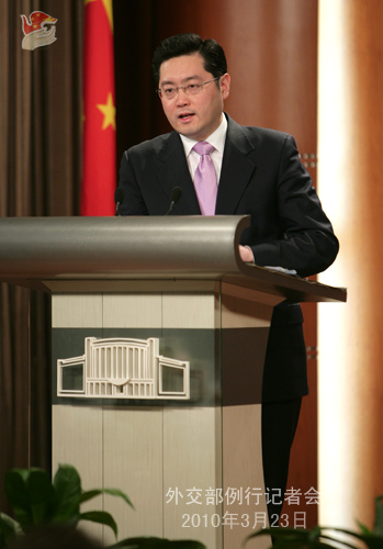 2010年3月23日,外交部發(fā)言人秦剛舉行例行記者會(huì)。答問(wèn)如下。