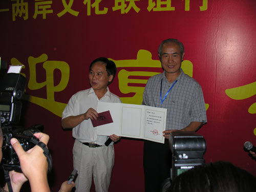 中國臺灣網7月14日湖南常德消息 7月13日上午,63歲的臺灣著名書法家陳坤一雙手接過了證書,激動地表示,沒想到我在九年之后,真的在這里看到了自己的書法詩碑,并獲得了證書!這是發生在湖南常德市的一幕。