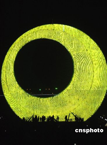 九月二十三日晚,離中國傳統(tǒng)中秋佳節(jié)只剩兩天的時(shí)間,大批中外游客紛紛前往廈門園博園觀賞外環(huán)直徑達(dá)三十六米的巨型“月光環(huán)”。 中新社發(fā) 王東明 攝