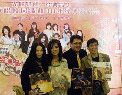 據(jù)“中央社”報道,潘越云等四人今天在上海舉行記者會,為年底在當?shù)嘏e行的“兩岸校園歌曲三十年經(jīng)典演唱會”進行宣傳,期間他們實時演唱自己的成名曲,勾起各方對臺灣民歌的回憶和眷戀。