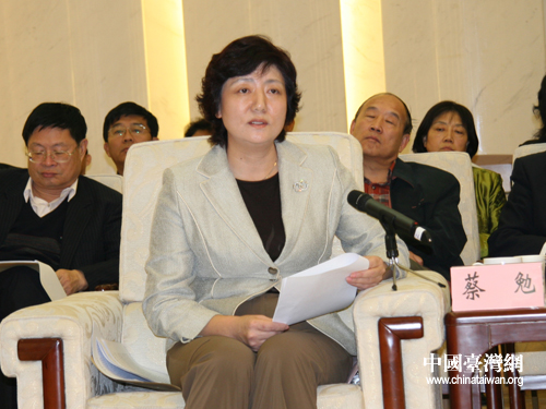 蔡勉說,近一段時間以來,陳水扁當局為了一黨之私,不顧臺灣同胞的利益,不顧國際社會的強烈譴責,頑固地推動“以臺灣名義加入聯合國的公投”、“以臺灣名義申請加入聯合國”等“臺獨”分裂活動。發展下去,勢必危及臺海地區的和平穩定,嚴重損害兩岸同胞的根本利益!芭_獨”沒有和平,分裂沒有穩定。兩岸同胞應明辨這一道理,堅決反對“臺獨”,遏制“臺獨”,絕不允許“臺獨”分裂勢力以任何名義、任何方式把臺灣從祖國分裂出去。