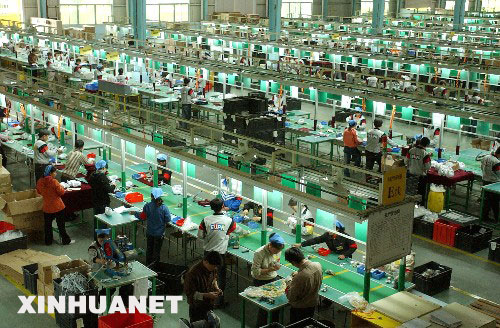 福建省漳州市努力營(yíng)造“親商、扶商、富商”的社會(huì)氛圍,確保在漳州投資的臺(tái)商在較為寬松、透明的環(huán)境中合法經(jīng)營(yíng),創(chuàng)造效益。圖為首期投資達(dá)1.2億美元的臺(tái)資漳州燦坤電子有限公司的家用小電器生產(chǎn)線(2004年4月27日攝)。 新華社發(fā)