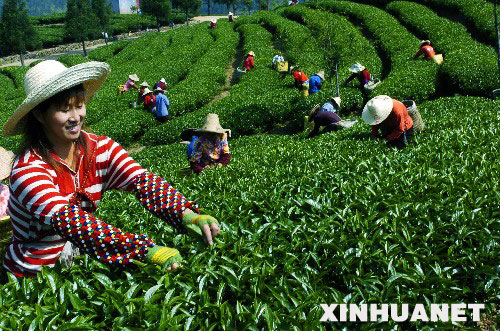 為了促進(jìn)兩岸經(jīng)濟(jì)交流,大陸已有包括福建、海南等地在內(nèi)的9個(gè)海峽兩岸農(nóng)業(yè)合作試驗(yàn)區(qū)。經(jīng)過(guò)十幾年的發(fā)展,由臺(tái)商林圣光夫婦投資,在福建閩侯縣海拔1000多米的高山――雪峰山種植的臺(tái)灣優(yōu)良茶葉種植面積已達(dá)到3800多畝,年產(chǎn)茶葉10余萬(wàn)公斤,產(chǎn)品暢銷國(guó)內(nèi)10多個(gè)省和日本、加拿大等海外市場(chǎng)。圖為茶農(nóng)在福建省閩侯縣的雪峰山采茶(2007年5月攝)。 新華社發(fā)