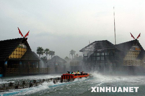 “樂(lè)滿地度假世界”是臺(tái)商在廣西重要的旅游觀光投資項(xiàng)目,占地330多公頃。圖為游人在桂林“樂(lè)滿地度假世界”內(nèi)游玩(2007年9月5日攝)。 新華社發(fā)