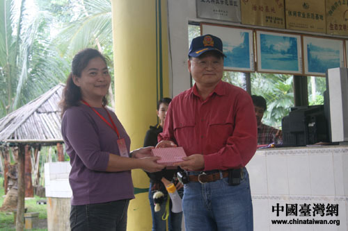 海南臺商林保森接受臺灣政治大學(xué)代表贈送的紀(jì)念品