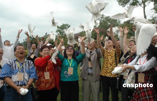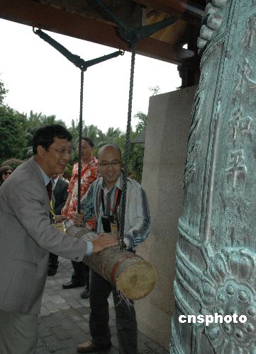 十二月一日,兩岸媒體海南行活動(dòng)前往三亞進(jìn)行采訪。圖為兩岸記者在三亞南山放飛和平鴿祈愿。 中新社發(fā) 王辛莉 攝 兩岸媒體海南行十二月一日在三亞進(jìn)行采訪活動(dòng),圖為在三亞南山兩岸記者同撞和平鐘。 中新社發(fā) 王辛莉 攝 中新社三亞十二月一日電(記者 王辛莉)兩岸媒體海南行今天在三亞進(jìn)行采訪活動(dòng)。上午兩岸媒體在南山寺舉行兩岸和平發(fā)展法會(huì),祈愿兩岸和平發(fā)展,共謀兩岸人民福祉。 中國(guó)國(guó)臺(tái)辦新聞局副局長(zhǎng)楊毅、海南省臺(tái)辦主任徐剛,來(lái)自臺(tái)南縣十二家媒體和內(nèi)地十四家媒體的近五十位記者,參加了今天的兩岸和平發(fā)展法會(huì)。 臺(tái)灣宗教文化興盛,寺廟繁多,來(lái)自臺(tái)南縣記者協(xié)會(huì)和記者公會(huì)的同行在海南采訪數(shù)天來(lái),一直比較關(guān)注海南島的宗教文化發(fā)展?fàn)顩r。今天,臺(tái)南縣記者和大陸記者一起游覽佛教文化勝地三亞南山文化旅游區(qū),參觀金玉觀世音,禮觀一百零八米高的海上觀音,同植和平樹(shù)、放飛和平鴿,深為南山佛教文化繁盛贊嘆。 “菩薩柳頭甘露水,能令一海偏十方,腥膻垢穢盡菊陰,今此壇場(chǎng)悉清凈。”南山寺主持莊嚴(yán)肅穆,口誦佛經(jīng),隨后寺僧們合誦《大悲咒》和《心經(jīng)》,大堂里兩岸媒體記者雙手合十,默默祈禱。 臺(tái)灣媒體采訪團(tuán)團(tuán)長(zhǎng)、臺(tái)南縣記者公會(huì)理事長(zhǎng)黃瑩輝表示,兩岸媒體共同舉行法會(huì),促進(jìn)兩岸媒體交流,推動(dòng)兩岸和平統(tǒng)一,他祝愿大家心想事成。(完)) |