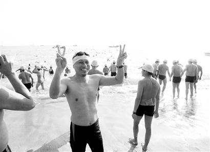 轉眼間,時間過去了半個多小時,主辦方規定的結束時間到了,還有不少人舍不得上岸,只好讓救生艇出動去清場。岸上的觀眾則熱情地等待著最后一名游泳者上岸,并報以熱烈的掌聲。(記者 葉秀月/文 吳曉平/圖)