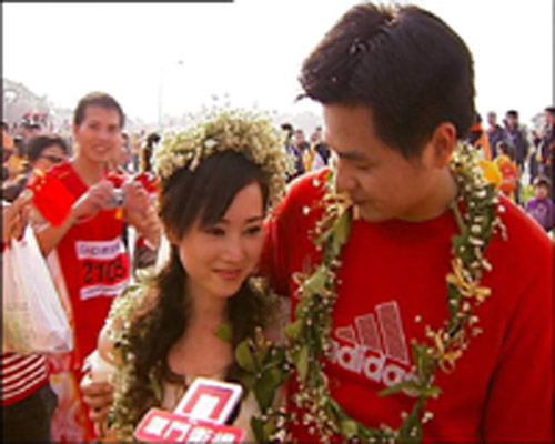 用時最長獎:5公里說長不長,說短也不短,走完全程也不過1個多小時。但就是這段距離,有人卻足足跑了七年之久。今年有一對情侶在跑完馬拉松5公里賽之后,在眾人的祝福聲中舉行了婚禮。據說,他們的這段愛情長跑,一跑就是七年。這對新人說,今年是奧運年,這也算是他們支持奧運的一種方式。七年的愛情長跑用馬拉松的方式修成正果,再應著2008奧運年的喜慶,這對新人干脆把“最受關注獎”一起抱回家吧。
