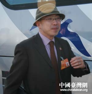 在全國政協(xié)十一屆一次會(huì)議開幕式上,一位頭戴禮帽的委員顯得有些與眾不同。數(shù)日之后的臺(tái)聯(lián)界別委員小組討論會(huì)上,記者又發(fā)現(xiàn)了這位委員的身影。紀(jì)斌,臺(tái)灣臺(tái)中縣人,現(xiàn)任全國臺(tái)聯(lián)常務(wù)理事、副會(huì)長。摘下了禮帽的紀(jì)斌,儼然一幅虛心學(xué)習(xí)的后輩姿態(tài)。2007年才開始接觸涉臺(tái)工作的紀(jì)斌,這是第一次參加全國政協(xié)會(huì)議。采訪過程中,他一直強(qiáng)調(diào)自己作為新人,需要學(xué)習(xí)的地方還很多。