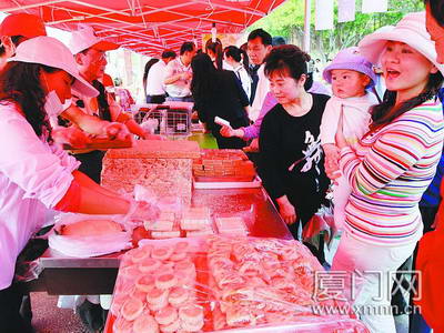 雖然艷陽高照,但偌大的白鷺洲音樂噴泉還是被聞香而來的饕客擠得水泄不通。2008海峽兩岸(廈門思明)民俗文化節昨日下午正式拉開帷幕。