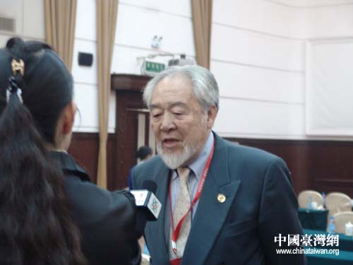 中國臺灣網4月8日鄭州消息  在第七屆中國和平統一促進會海外會長會的會場上,有一位白須冉冉,仙風道骨的老人,他就是中國和平統一促進會理事,全英華人中國統一促進會會長,南京大學名譽校董、客座教授,全國政協海外委員單聲先生。當年,他曾因當面向溫家寶總理提出以法律的手段促進祖國統一的建議(他當時提出的名稱是“統一法”)而聞名一時。記者在與他的交談中,也切實感受到了單聲先生以法理反“臺獨”、促統一的堅定與熱切。
