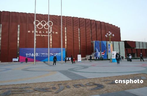 2月26日,“好運北京”2008跆拳道國際邀請賽在北京科技大學開幕,本次比賽共有來自27個國家和地區的運動隊報名參賽。圖為北京科技大學體育館,該場館將承擔奧運會柔道、跆拳道和殘奧會輪椅籃球、輪椅橄欖球四個項目的比賽。 中新社發 富田 攝