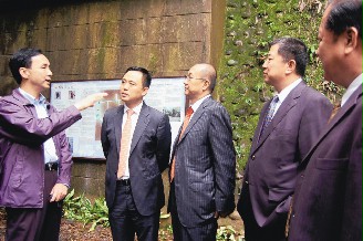大陸富豪考察團在后慈湖軍事隧道前聽取解說。
