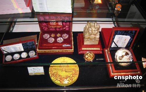 5月底,臺灣大洋金銀幣有限公司展示新發(fā)行的北京奧運金銀紀(jì)念幣第三組。 中新社發(fā) 陳立宇 攝