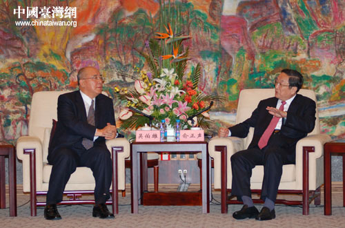 5月29日,中共中央政治局委員、中共上海市委書記俞正聲在上海會見中國國民黨主席吳伯雄。吳伯雄率領(lǐng)的中國國民黨大陸訪問團是當天下午抵達大陸之行第三站上海的。中國臺灣網(wǎng) 田云鵬 攝