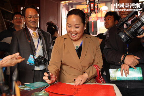 臺灣嘉賓在偏坡鄉受到熱情歡迎(中國臺灣網 楊永青 攝)