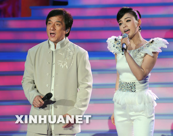 10月31日,陳思思(右)與成龍在演唱會上表演。新華社發(吳景騰 攝)