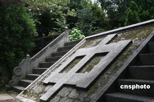 墓前斜坡上,用水泥雕成一個高大的“中”字。取意于閻錫山認為:處事、為人、為政,都要“發于仁,歸于中”。 中新社發 耿軍 攝