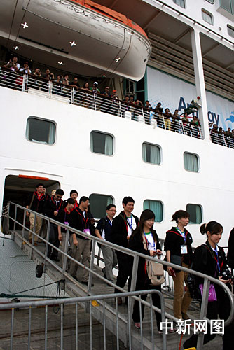 2月8日午后2時30分,載著1600名臺灣安利集團(tuán)員工的“海洋神話號”郵輪,向海口秀英碼頭拋下纜繩。臺灣安利公司是次豪擲1億新臺幣包下“海洋神話號”郵輪,招待安利的直銷商舉行“海洋觀光之旅”。郵輪6日從臺灣高雄啟航,昨日停靠香港,今日來到海南島。 這是臺灣與海南兩島之間“郵輪游”的首航,也是海南建省以來接待的規(guī)模最大的臺灣旅游團(tuán)隊。“海洋神話號”郵輪則是海南建國際旅游島戰(zhàn)略正式啟動后,到訪海口載客量最多的郵輪。 中新網(wǎng)發(fā) 關(guān)向東 攝
