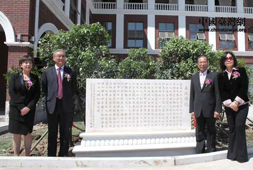 5月6日,北京臺灣街標志性建筑“五桂樓”落成揭牌儀式在北京舉行。圖為出席儀式的兩岸嘉賓為碑刻《五桂樓記》揭牌并合影。(中國臺灣網 田云鵬 攝)