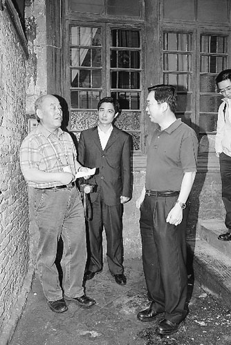 6月8日,在重走故宮文物南遷路途中,李文儒(左一)與當地文物專家考察當年存放文物的貴州毛(光翔)公館。照片由故宮博物院提供