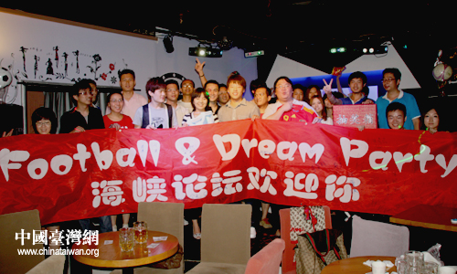 中國臺灣網6月29日北京消息 炎炎烈日,絲毫沒有減退球迷們對世界杯的熱情。28日晚,由本網海峽論壇策劃并舉辦的“football and dream party”,吸引了來自北京大學、人民大學、北京中醫藥大學、北京聯合大學等十余所高校的五十多位兩岸大學生參與。兩岸青年們同聲為世界杯助威吶喊,熱情交流,共敘同根情誼。