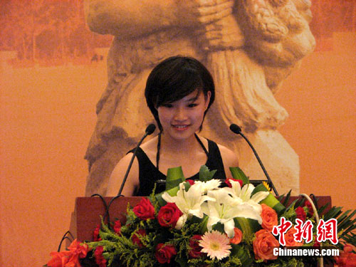 第二屆海峽兩岸炎帝神農文化論壇8日在湖北隨州市舉行,年僅22歲、來自臺灣的美女學者宋佳穎現身論壇,發表《臺灣民俗藝陣創新發展之研究》演講,成為全場的亮點。作 者:李映民 李純