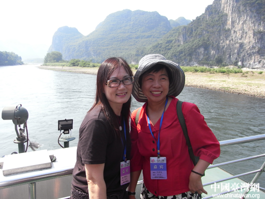 臺灣文化界人士在漓江上合影留念(中國臺灣網 蕪同 攝)