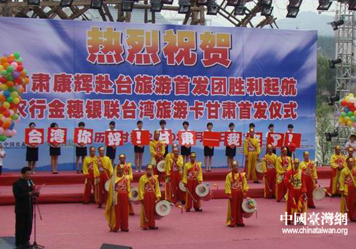 首發(fā)儀式熱烈而又隆重,活動現(xiàn)場焰火鳴放、氣球飛揚。甘肅省委常委、副省長劉永富和相關(guān)部門負責同志為甘肅首批赴臺旅游的80多名游客佩戴了花籃、贈送了《康輝臺灣行》紀念冊和康輝VIP旅游卡。臺灣旅游觀光協(xié)會負責人賴瑟珍為甘肅赴臺旅游首發(fā)儀式發(fā)來賀電。臺灣13家旅游接待部門的負責人專程從臺北趕來參加了首發(fā)儀式。甘肅康輝國際旅行社的負責人在儀式上發(fā)言致辭。