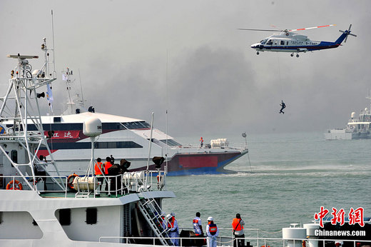 9月16日上午,2010年海峽兩岸海上聯(lián)合搜救演練在臺(tái)灣海峽的廈門(mén)、金門(mén)附近海域舉行。