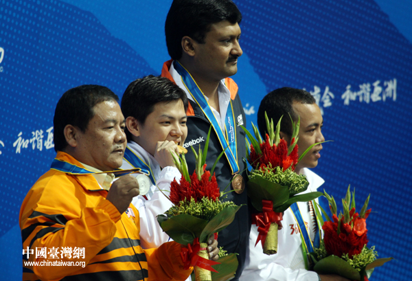 組圖:中華臺北隊臺球選手郭柏成披金瞬間