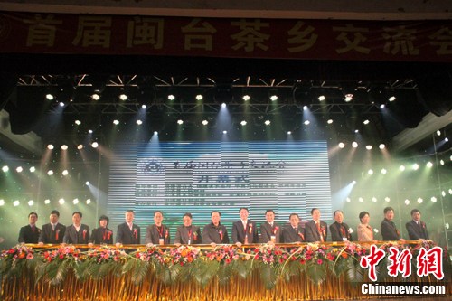 全國(guó)政協(xié)常委、臺(tái)盟中央副主席黃志賢、臺(tái)灣新黨秘書長(zhǎng)吳成典等海峽兩岸嘉賓共同推桿,啟動(dòng)“首屆閩臺(tái)茶鄉(xiāng)交流會(huì)”。