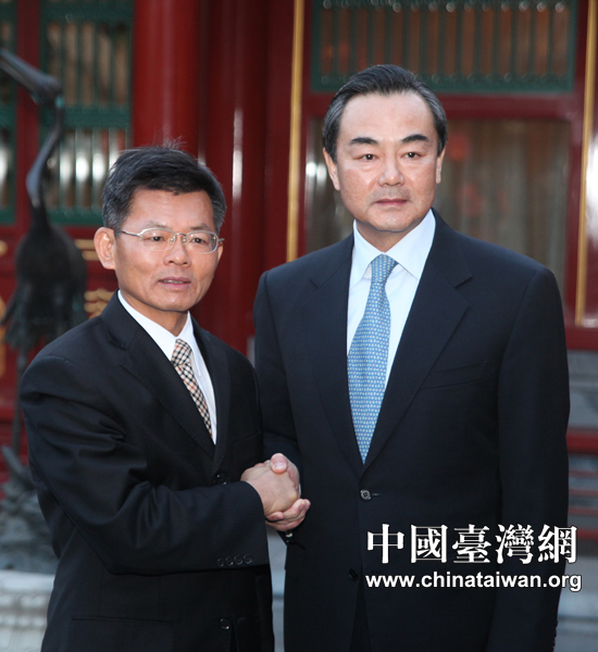 3月22日下午,中共中央臺辦主任王毅在北京釣魚臺賓館會見來訪的臺灣前高雄縣長楊秋興一行。 (中國臺灣網 田云鵬 攝)