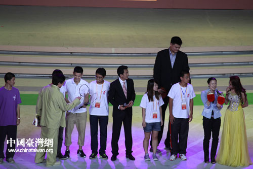 成龍、姚明、王楠、林丹等深受兩岸青年喜愛的演藝、體壇明星云集,為來自海峽兩岸的8名同學慶祝生日,送上各自準備的禮物和簽名,以及對兩岸青少年未來的寄語和祝福。(中國臺灣網 普燕 攝)