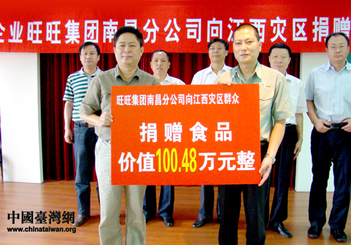 旺旺南昌分公司向江西災(zāi)區(qū)捐贈(zèng)100萬元食品(圖片來源:江西省臺(tái)辦)