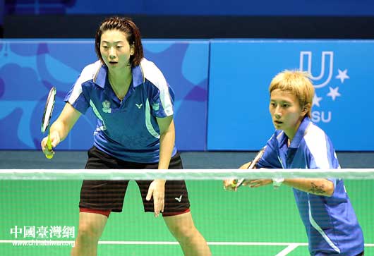 白驍馬(左)與鄭韶婕在女雙決賽中對陣韓國選手。(中國臺灣網 劉海偉 攝)